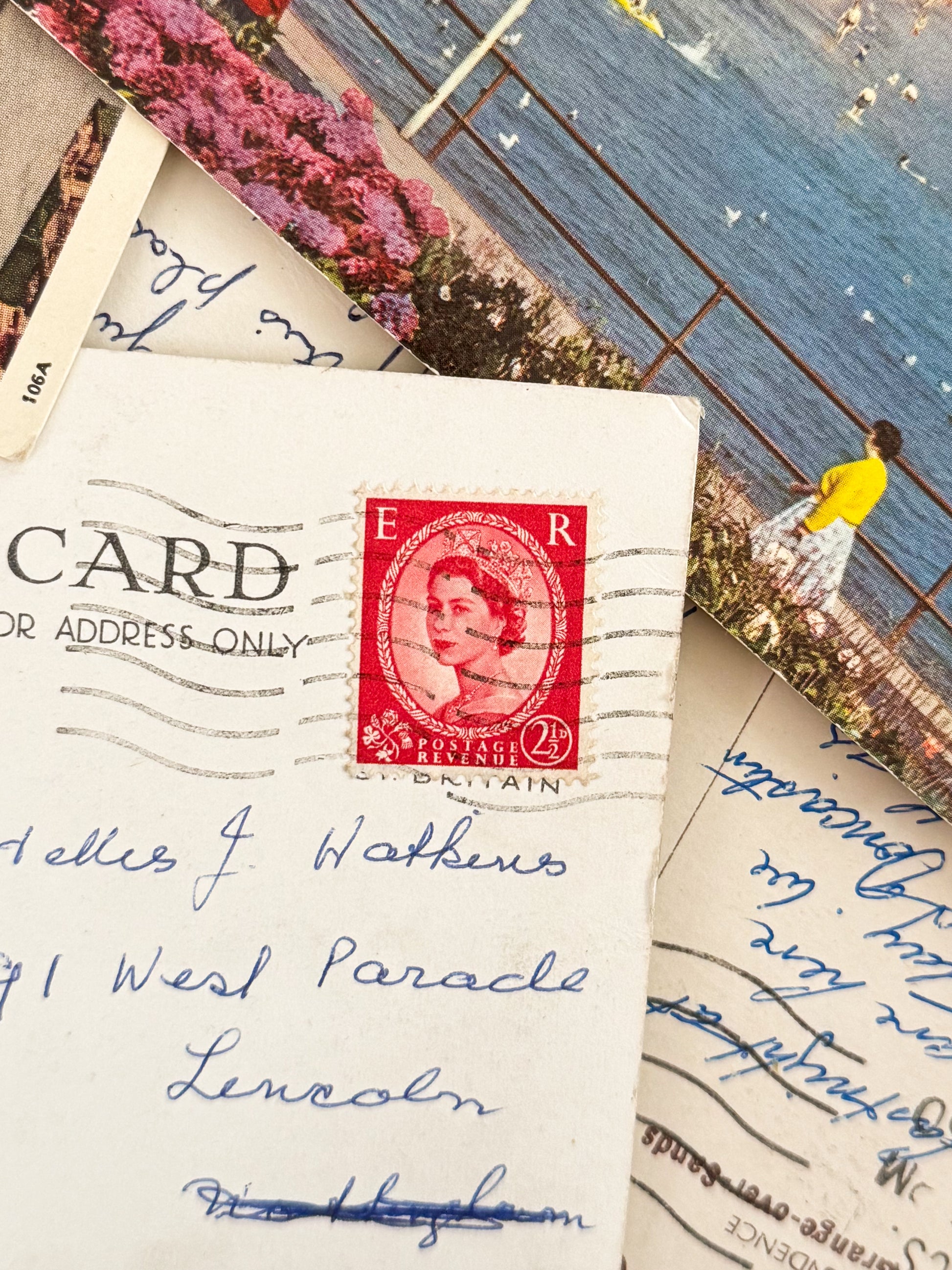 This pack contains x5 random postcards from the 20th century. Some are blank, some have been written on and still have their original stamps.